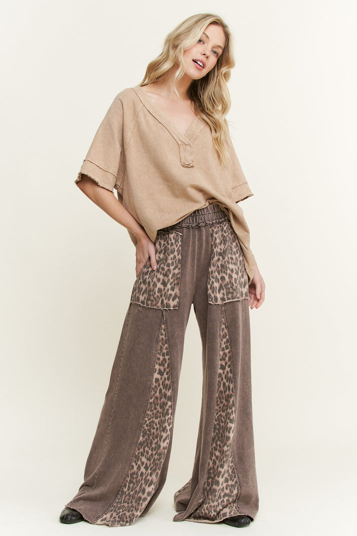Objevte sebevědomí, svobodu a styl s těmito výraznými kalhotami. Zemité tóny v kombinaci s leopardím vzorem vytvářejí vzhled, který okamžitě přitahuje pohledy – ideální pro ženy, které se nebojí zazářit. Elastický pas a volné nohavice zaručují pohodlí i svobodu pohybu – a zároveň lichotí křivkám. Skvělé pro denní outfit i večerní příležitosti, kdy chcete být nezapomenutelná.