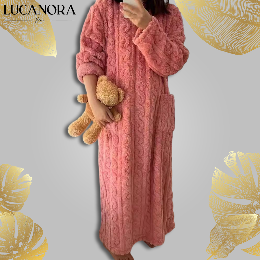 ✔ Pocit útulného objetí: Noční košile je vyrobena z ultra měkkého, prémiového materiálu, který vás zahřeje a udrží pohodlí po celou noc. I v chladných večerech se budete cítit příjemně a elegantně, bez těžkého nebo objemného vzhledu.