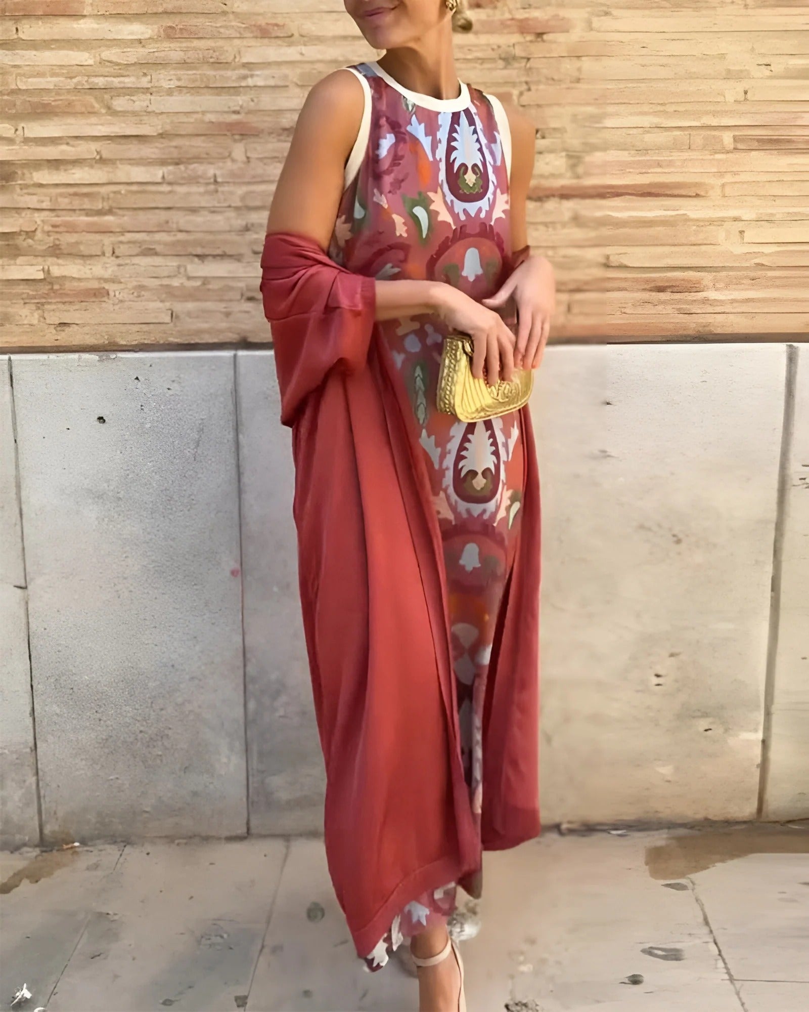 Maruta Fabrizi™ Dámské bezrukávové maxi šaty a přehoz