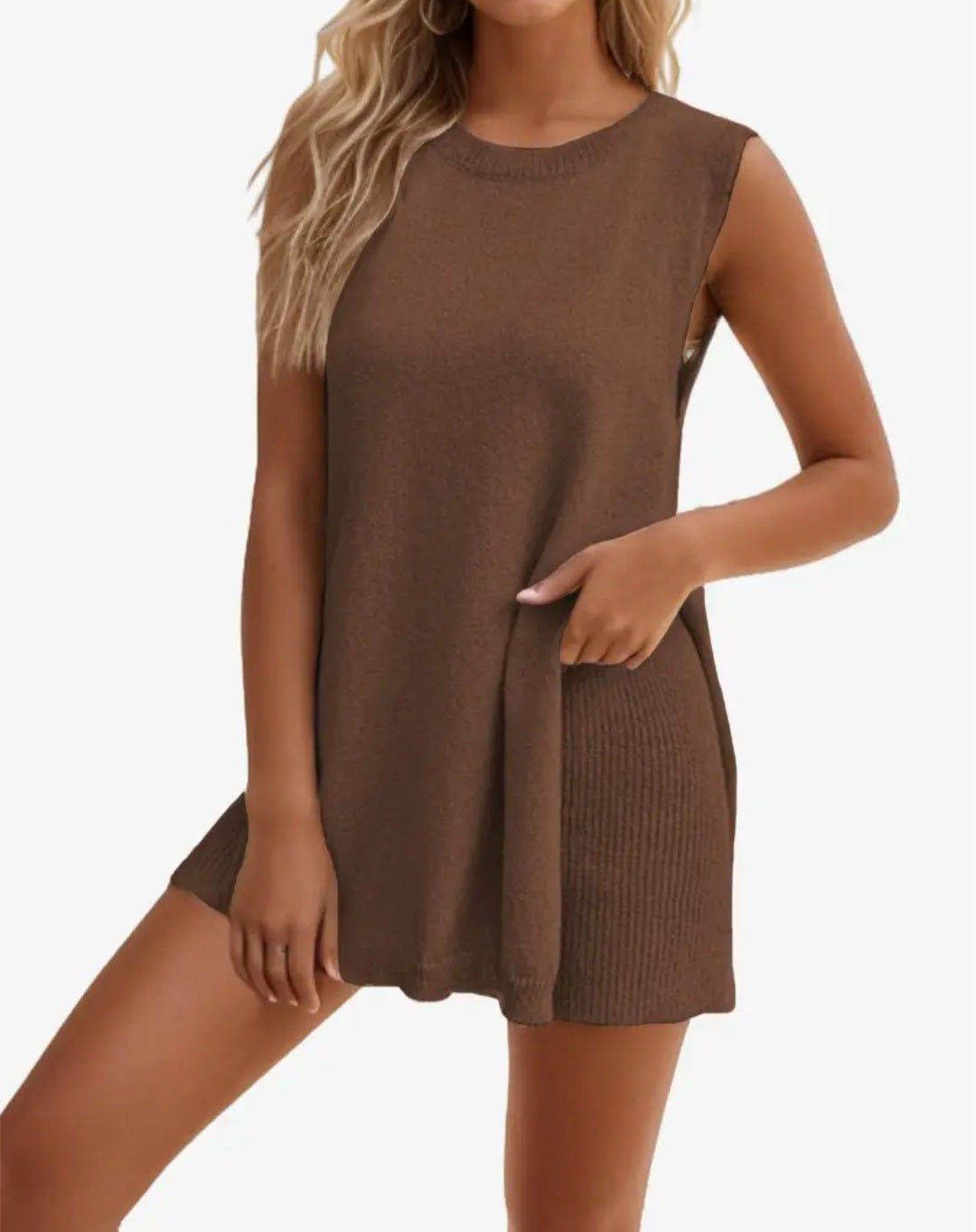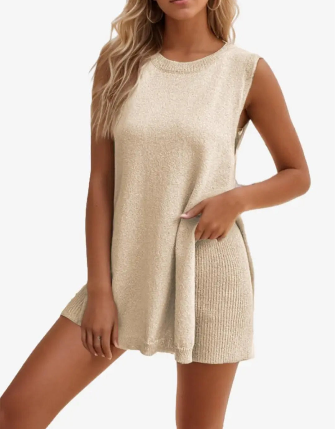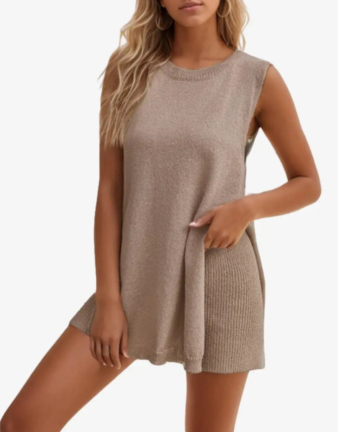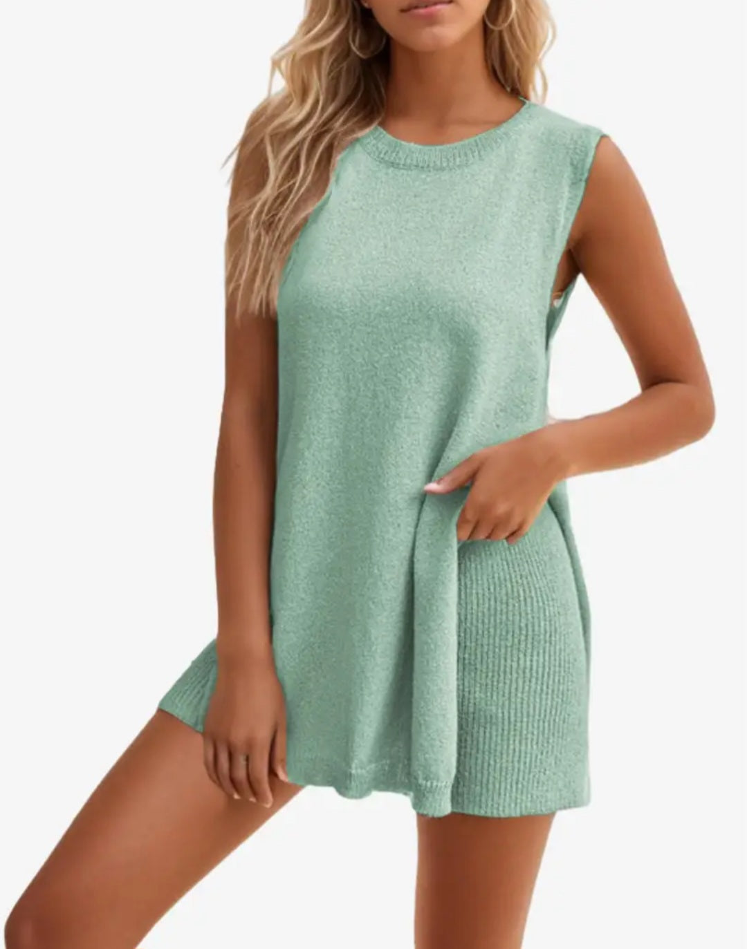 Vanessa Lucidi™ Volná ležérní vesta šortky s kulatým výstřihem pletený kostým