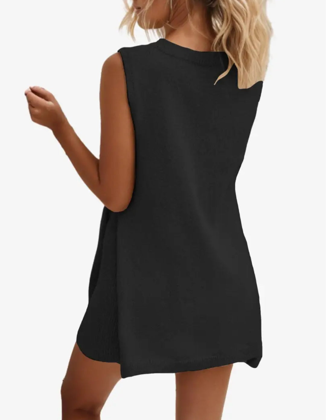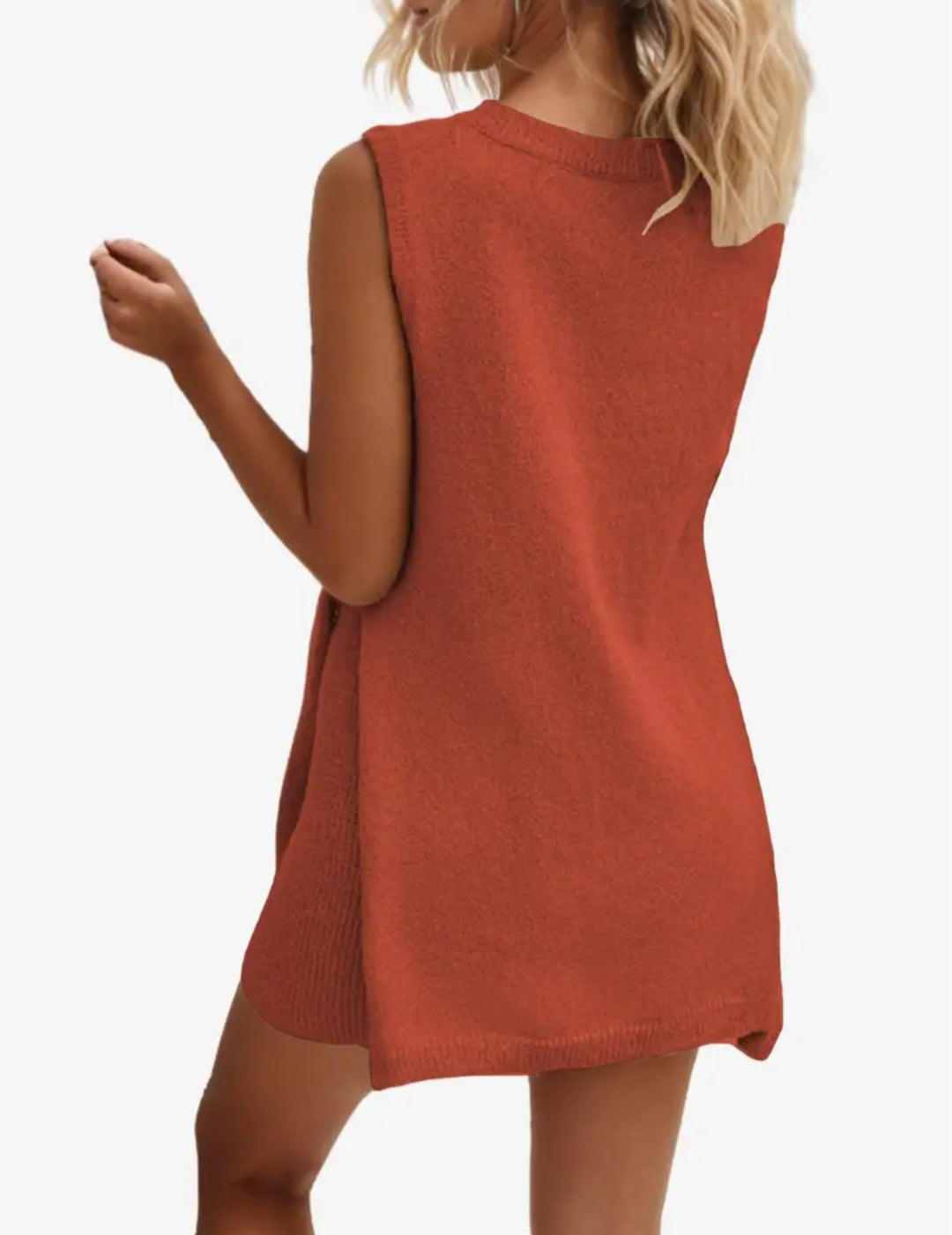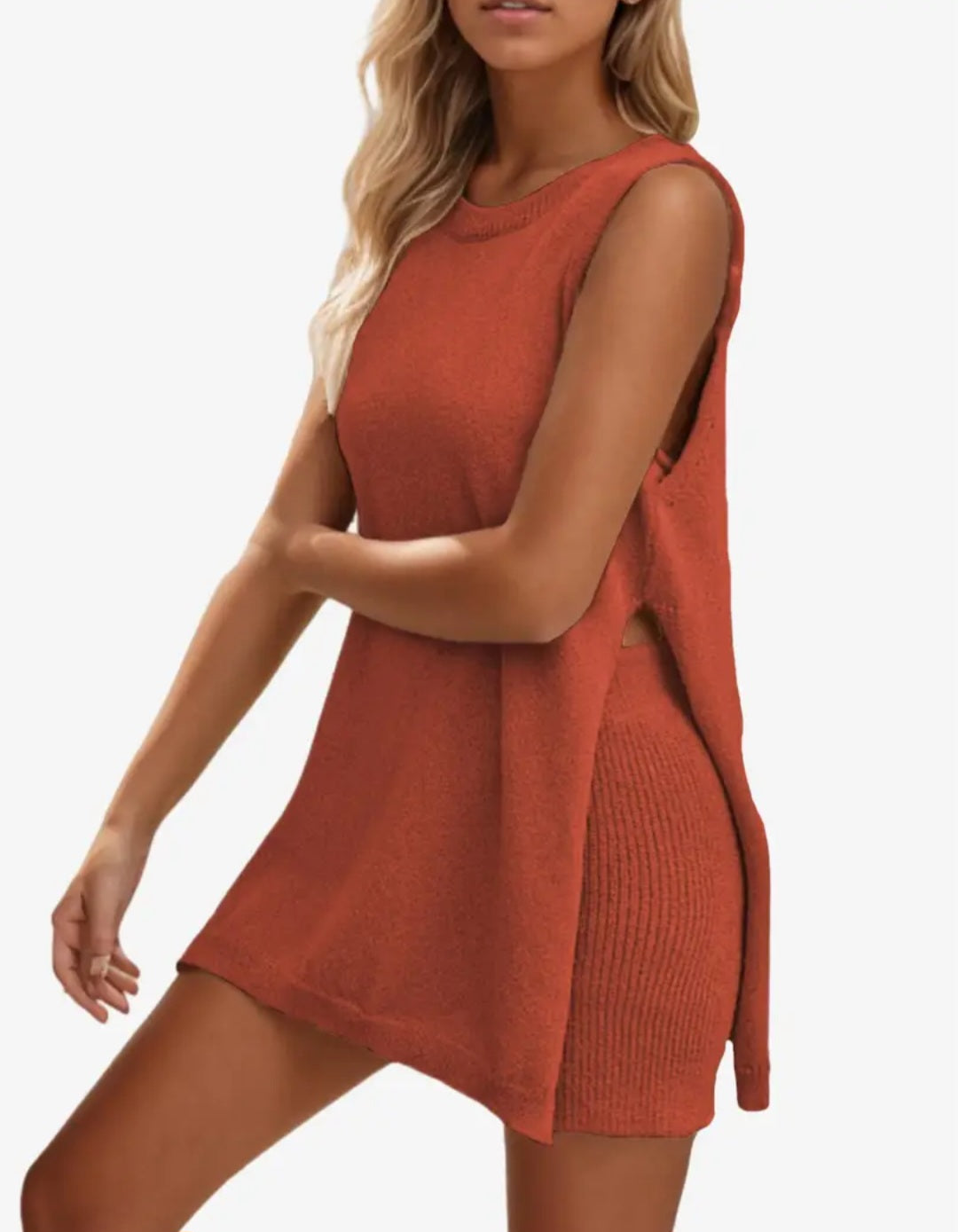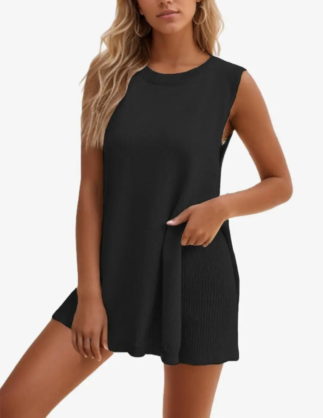 Vanessa Lucidi™ Volná ležérní vesta šortky s kulatým výstřihem pletený kostým